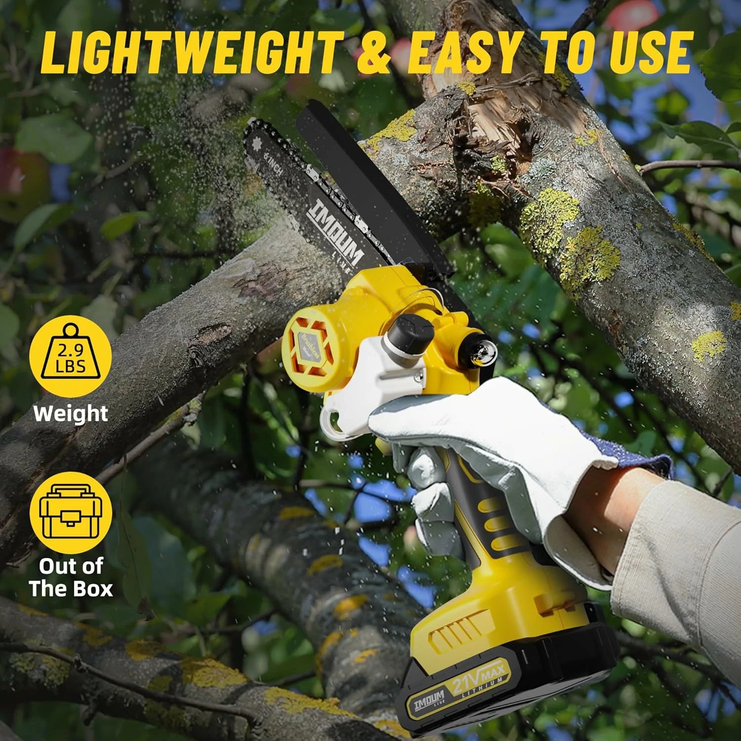 - 【2.2 lbs of Control!】 Seniors and women can wield this cordless chainsaw effortlessly with one hand! The compact body reduces fatigue during wood crafting or log cutting, ensuring comfort even after hours of use.