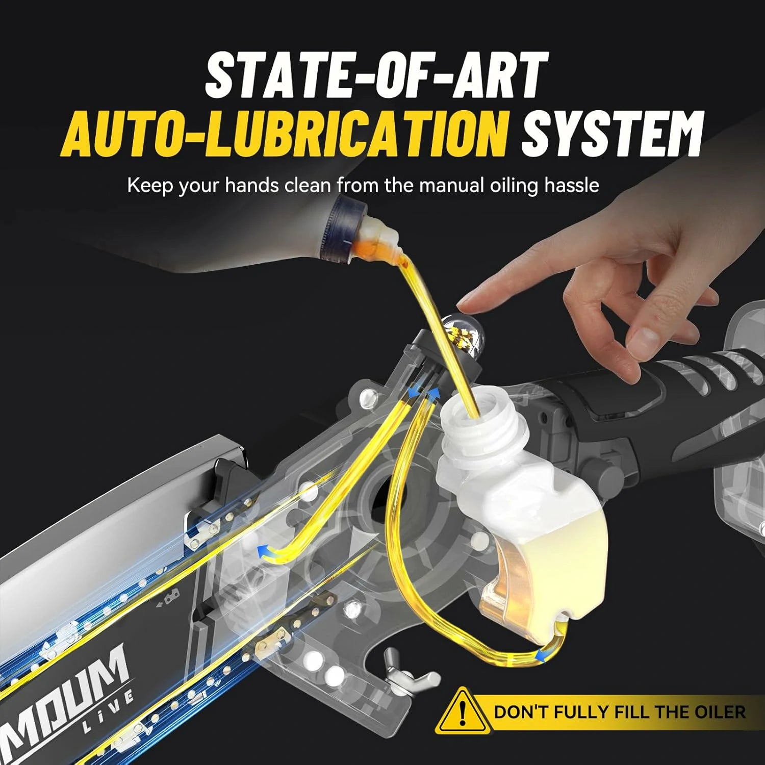 - 【Auto-Oiling System.】 Never pause for lubrication! A single push activates the built-in oiler, keeping chains sharp during extended cutting wood sessions. Leak-proof design eliminates stains—focus solely on gardening pruning or camp saw duties.